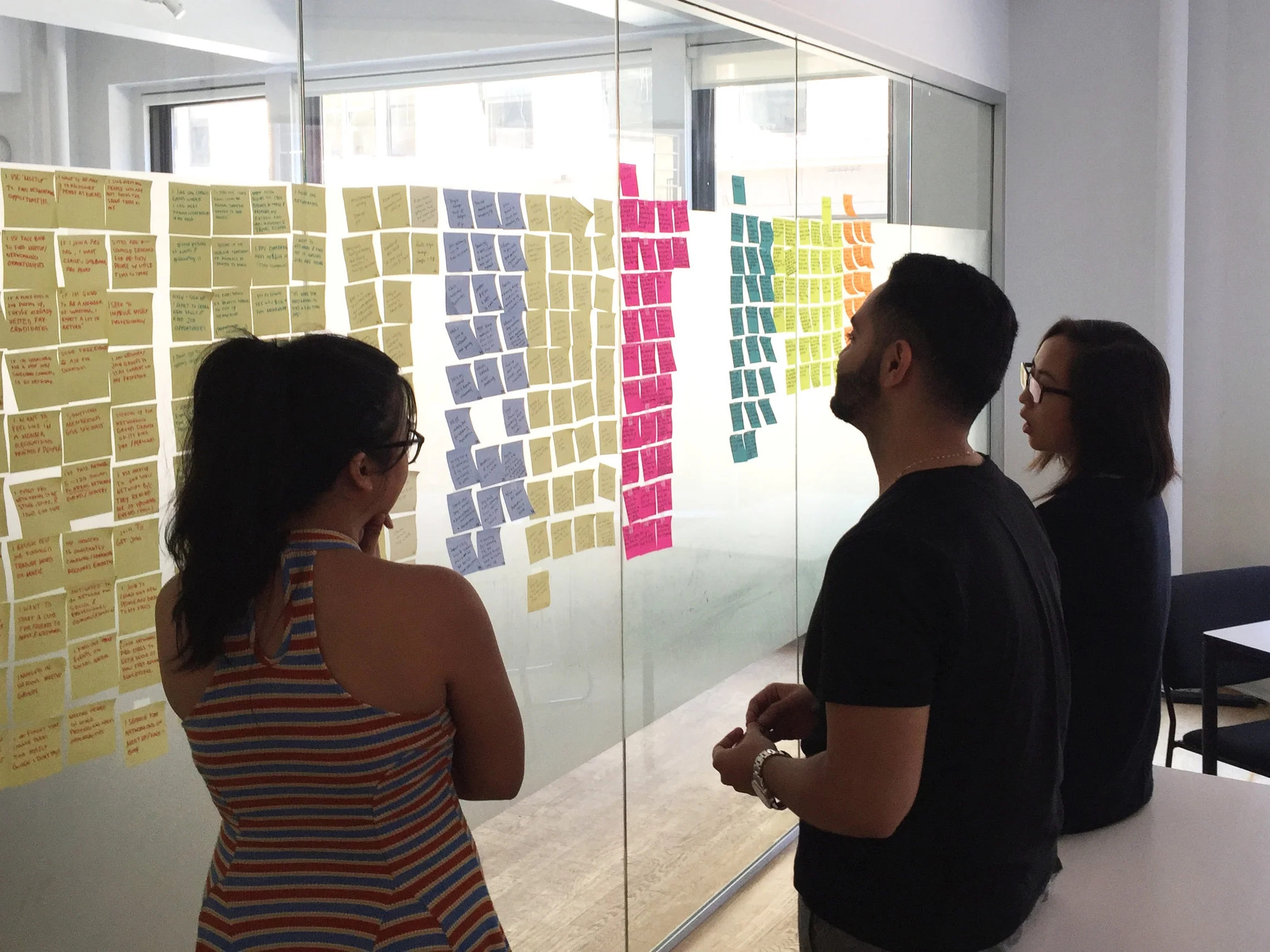 Affinity mapping was an essential method for understanding user needs. We wrote down insights from each interview on sticky notes and grouped them together based on similarities. As trends emerged, we felt confident prioritizing site features. Some of the patterns that emerged were: